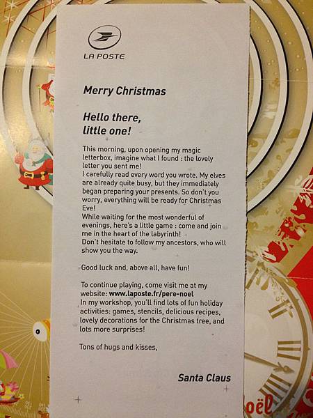 法國聖誕老公公的回信比較制式化一點,但他網路申請就可以得到回信這一點上真的是佛心來著的~