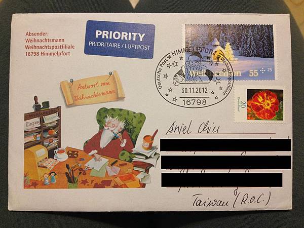 2012年寫了幾張卡片給聖誕老人,也陸陸續續收到回信了。