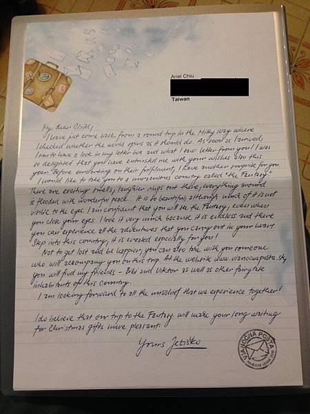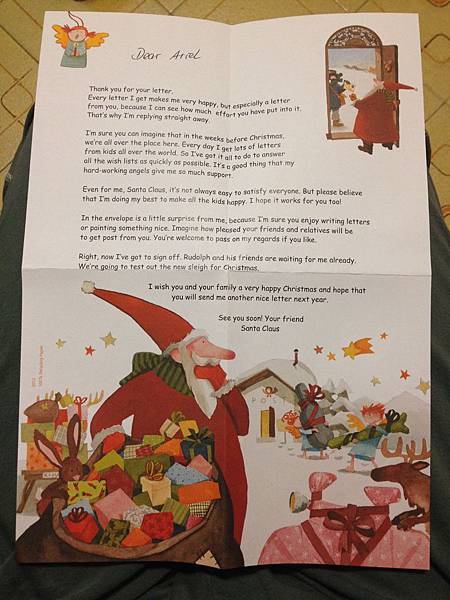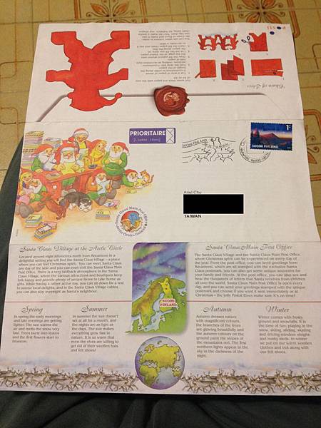 在經歷了四個多月的等待後,終於在2013年的四月底收到了芬蘭聖誕老公公的回信