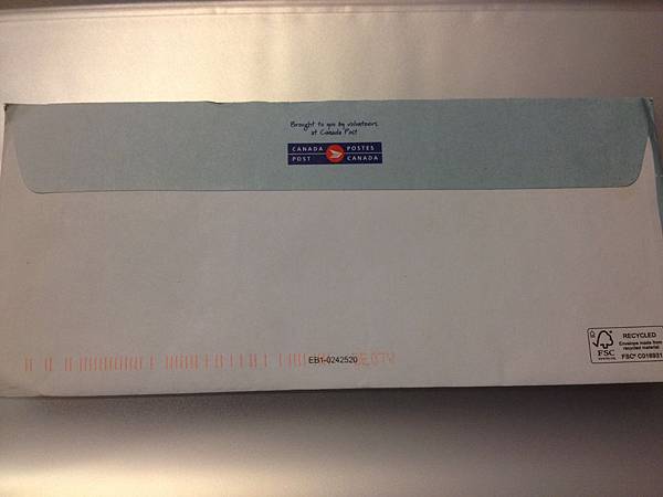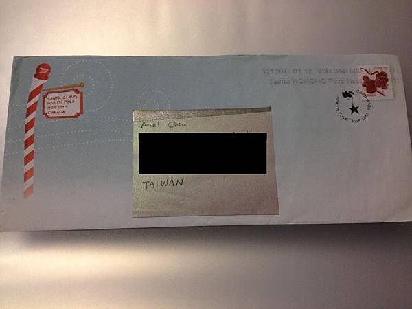 沒想到加拿大的聖誕老人竟然直接把我的紙條貼在信封上寄給我自己......
