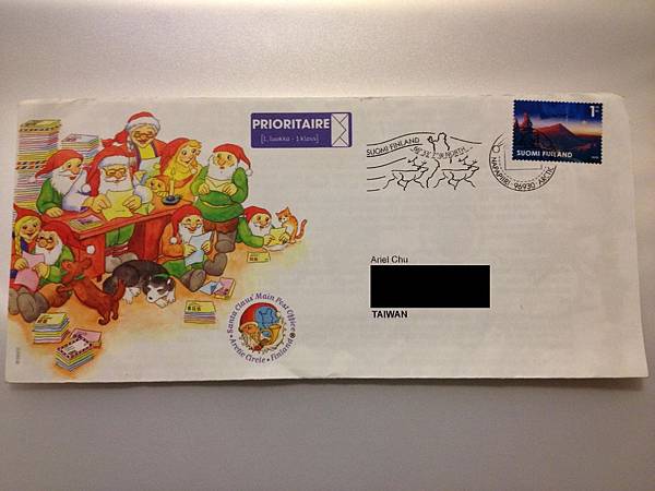 沒想到這麼忙碌的芬蘭聖誕老公公竟然是用真的郵票和郵戳